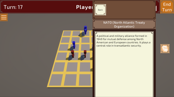 The task was to create a codex and a turn based grid game. Both of these are present in the game Suzerain but I only had to create a simplified version of these two things